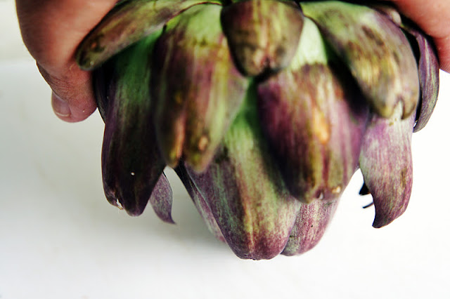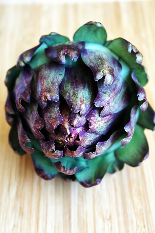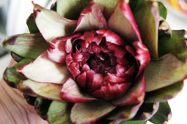 Dei uma passadinha naquele supermercado chique da nossa cidade e encontrei umas alcachofras lindonas por lá. Quando olhei o preço quase caí dura no chão! Não sei se já aconteceu com você, mas comigo acontece muito. Às vezes olho uma coisa e parece que o olhar ativa o cérebro, que ativa o paladar, que ativa uma vontade louca de experimentar. Aí o jeito foi exercer o "desapego" ao dindin e pagar (às vezes caro) para satisfazer a vontade. Foi assim com a alcachofra!! Quando passei e vi aquela florzona linda na prateleira me deu uma vontade louca de comê-la e o jeito foi pagar quase R$ 8,00 pela bichinha!!