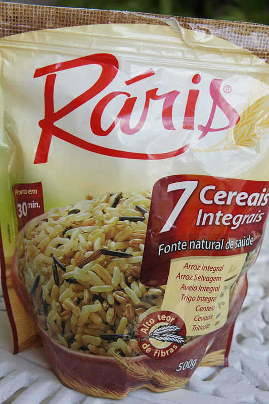 Já que era para "inventar", comecei variando o arroz. Nada de arroz comum! Como tinha um pacote de Raris 7 Cereais, separei 2 xícaras e resolvi usá-lo.